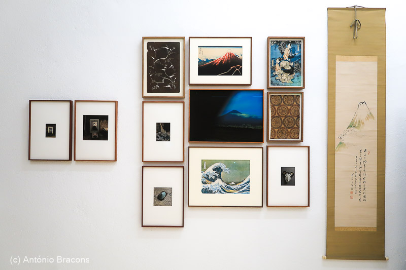 É, pois, a imagem desse altar, de estrutura cumulativa e ramificada, que fornece a Albano Silva Pereira um modelo de disposição para as imagens, para os objectos e talismãs na exposição NETSUKE. Estes são sub-agrupados por secções, nas paredes e em vitrines ou móveis, deixando ver-se mais ou menos explicitamente, dizendo respeito a rituais como o chá ou o sexo, por exemplo, formando composições constelares que agregam um atlas de referências cruzadas para o autor.