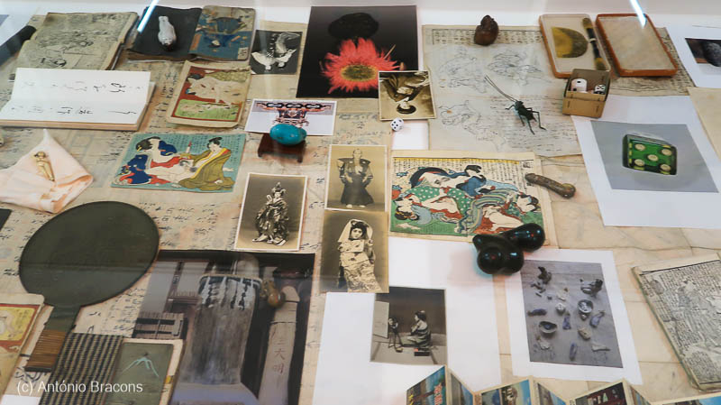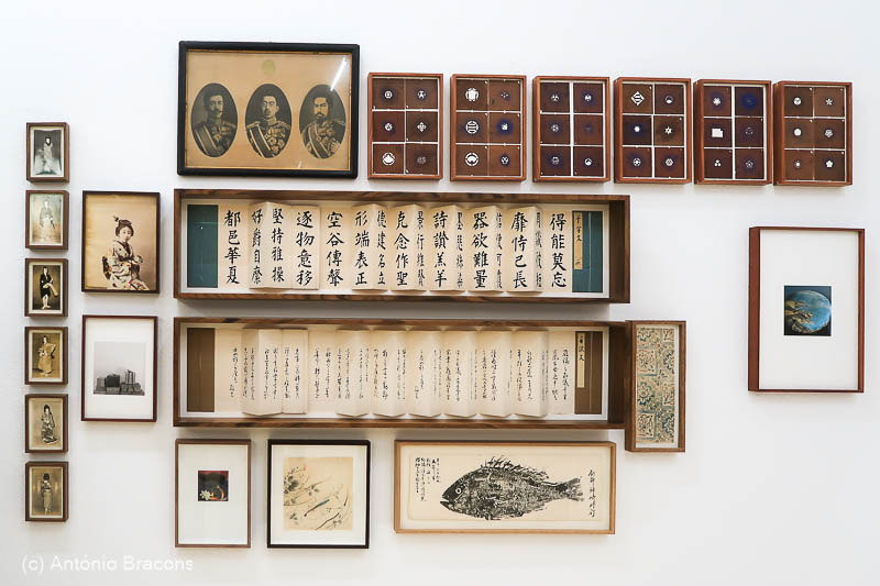 É neste aspecto do paradoxo que gostaria de me deter para abordar a complexidade do olhar do artista e da contemplação dos objectos presentes nesta exposição: caixas, taças de cerâmica, amuletos, panos, papéis inscritos de caracteres, gravuras, netsukes, etc.
