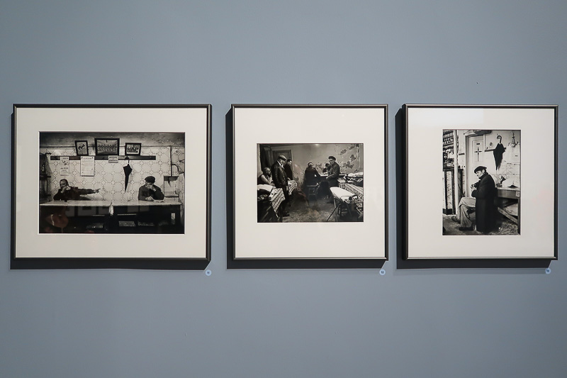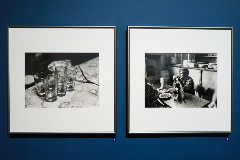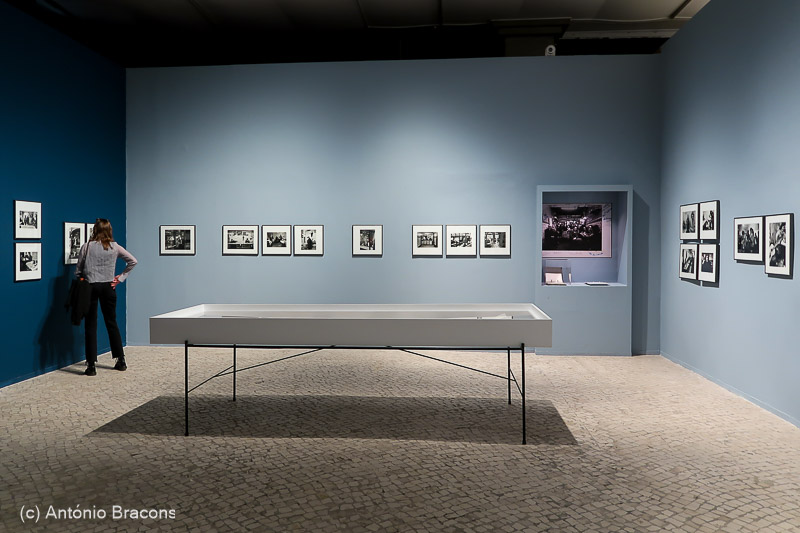 A abrir a exposição, uma figura está ali, convidando-nos a entrar. O primeiro espaço apela para o laboratório a preto e branco, no qual desenvolveu todo o trabalho que apresenta, em pequeno ou médio formato. Estão as embalagens de papel fotográfico, provas de contacto, materiais de laboratório… então, temos as fotografias… Acompanhando cada série, folhas de sala, em português e inglês fazem um enquadramento à série e identificam cada uma das fotografias.