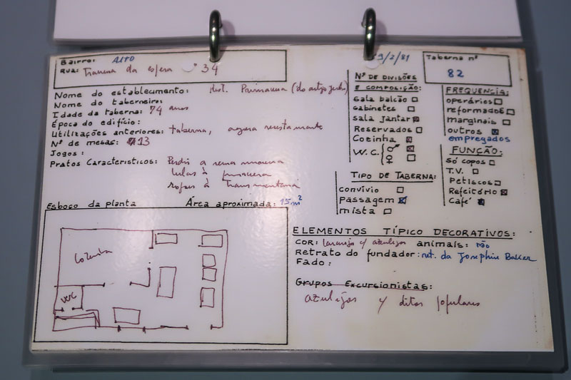 Antevendo o desaparecimento, faz o levantamento das “Tabernas de Lisboa”, que viria a dar o seu primeiro livro, em 1981: para cada uma cria uma folha de registo onde identifica parte da história: da data da fundação aos proprietários e aos clientes, às caraterísticas específicas, fotografa. Volta para identificar as pessoas presentes nas fotografias…