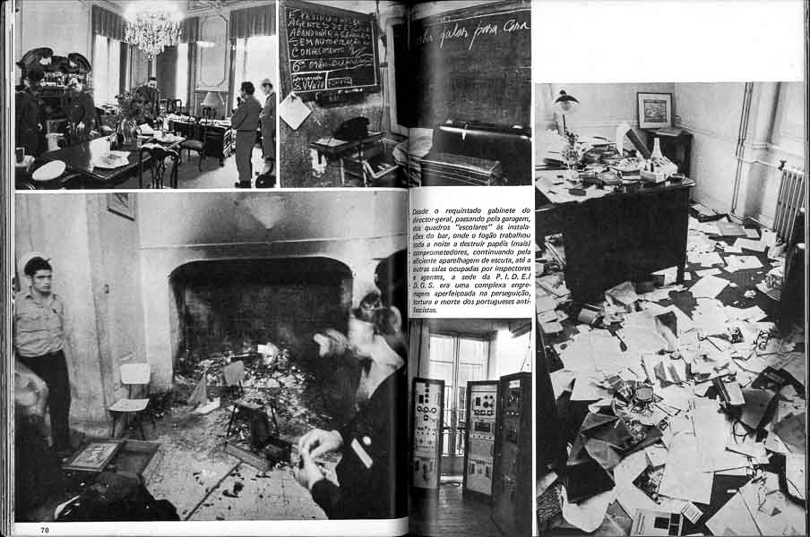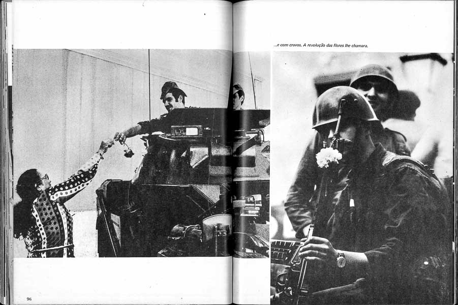 Este álbum de fotografias, feito de efémero, conta a história do desmoronamento e suas sequelas imediatas, incluindo o trágico episódio da Rua António Maria Cardoso, quando a polícia política encurralada atirou a matar sobre os manifestantes. Há rostos que são jubilosos até à perda da lucidez; crispados até à incredulidade; todos, porém, trazem impresso o fim de um tempo subtilmente entrançado com o começo de outro. Por isso o blindado levando Marcelo Caetano saiu do Largo do Carmo despedido por breves punhadas no vidro grosso das janelas: era já o passado recente a caminho do esquecimento, passado apupado, empurrado entre cantos.