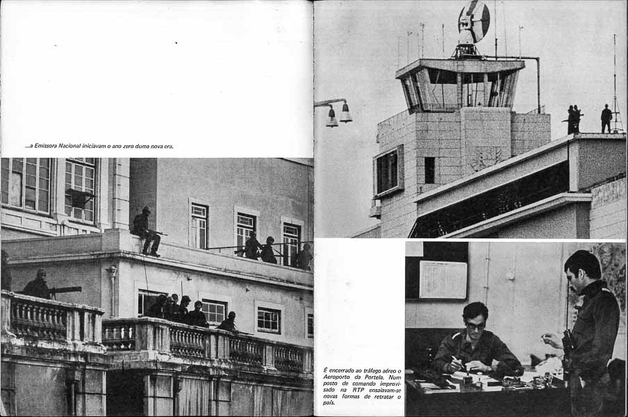 Não havia ângulos a preparar porque o entusiasmo e a beleza estavam em todos os rostos, em todas as ruas. Não havia depoimentos a procurar porque os gritos de ‘Vitória’, ‘Vitória’ irrompiam de todas as gargantas, em todas as praças, em todas as esquinas, em todas as casas. E assim pelo dia fora, enquanto se acabavam os rolos, as fitas e as moedas de cinco tostões para o telefone. E populares forçavam as barreiras do exército em busca de garagens e postos de gasolina para os tanques quase vazios dos carros blindados que cercavam o Quartel do Carmo. Soldados, populares e jornalistas do mesmo lado, esquecendo uns que estavam para combater, os outros que deviam cuidar da sua segurança e os últimos que a caneta, a máquina fotográfica e o microfone são para gravar. Quantas frases belas para escrever, para filmar, para gravar. Quantas frases belas se não perderam, quantas fotos ficaram por tirar, quantas palavras se não gravaram porque os soldados combatiam e o povo combatia com os soldados e os jornalistas combatiam com os soldados e o povo e todos gritavam as mesmas palavras de liberdade e paz.