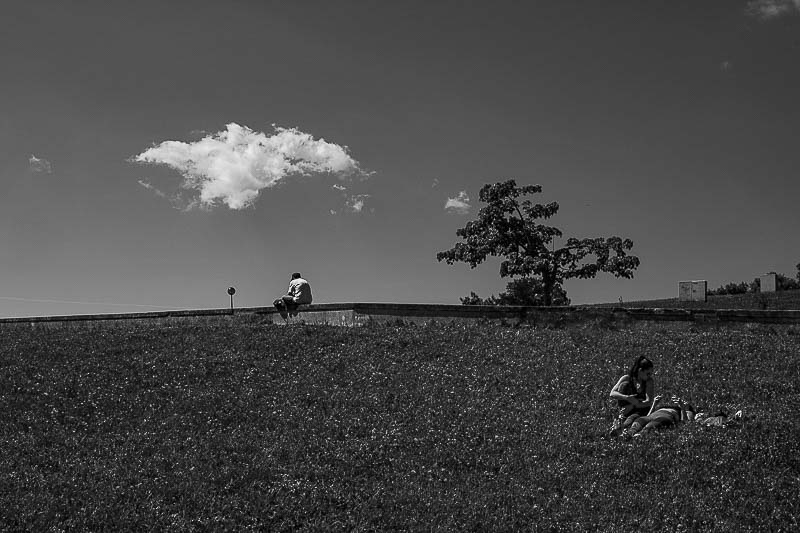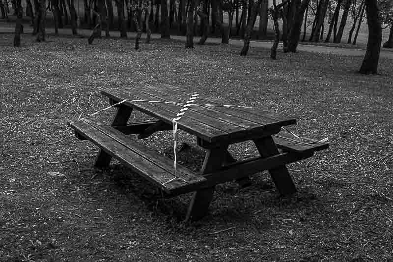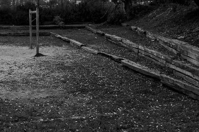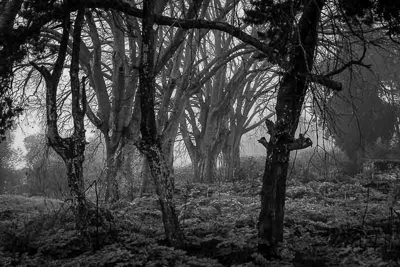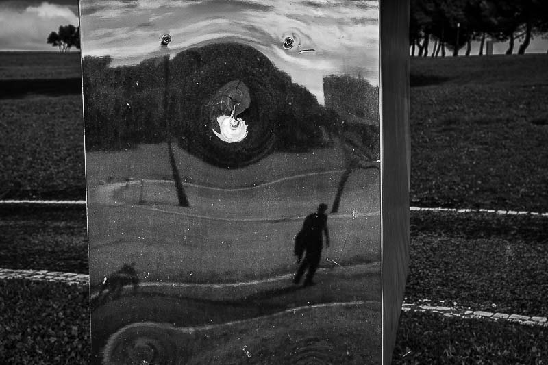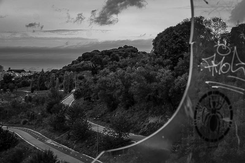 Durante esse período percorri e fotografei o parque com regularidade, começando muitas vezes na ponte que lhe dá acesso e continuando, depois, nos caminhos quase vazios ou nos espaços temporariamente interditos, nas ruínas das antigas quintas, nalguns recantos esquecidos ou nos espaços amplos, ladeados por vegetação. No diálogo com árvores velhas de muitos anos, muito anteriores ao parque. Na luz clara e nítida de alguns momentos, no cinzento dos dias chuvosos ou nas imagens difusas das manhãs de nevoeiro. Verificando mudanças, introduzidas do exterior ou provocadas apenas pelo mudar do tempo, da estação do ano, da hora do dia, da luz que passa, de quem passa. Do passar do tempo.