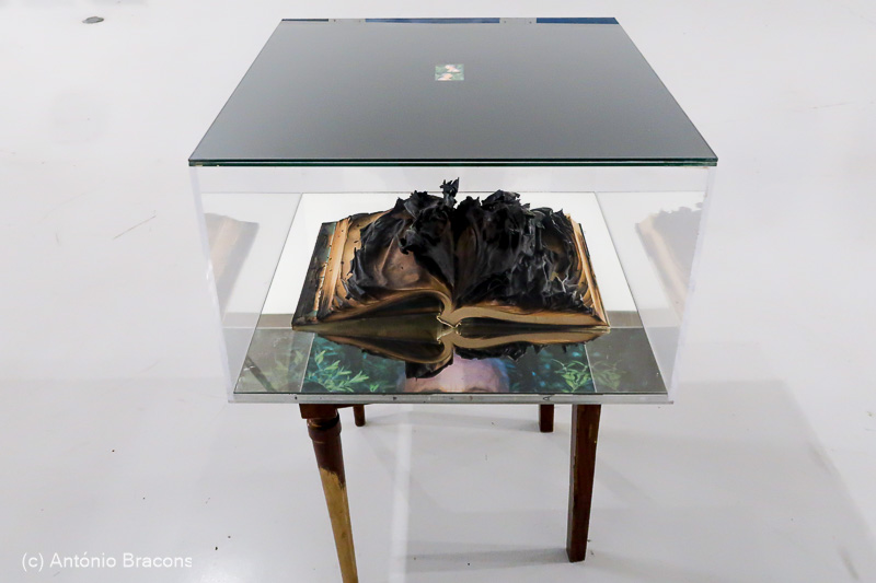 Como todas as exposições, esta é, de uma forma especial, autobiográfica. José Manuel Rodrigues, que desde alguns anos assina como José M. Rodrigues, foi co-fundador da Perspektief – Associação de Artes, em Amsterdão em 1987, e mostra-nos os 5 primeiros números da revista, a par com duas das suas primeiras edições: “A Viagem” e «O primeiro “TRATADO” com o meu amigo Luís Carmelo», conforme manuscreve. Estão no interior da sala, um pouco mais para o fundo. Mostra ainda diversas peças escultóricas ou instalações, em que a fotografia está presente e o autor se esconde ou se dá a mostrar, em reflexos. Mostra-nos dois espelhos que ele próprio criou. O espelho está também presente em várias das fotografias: um fragmento da imagem, da fotografia, que em si é um fragmento.