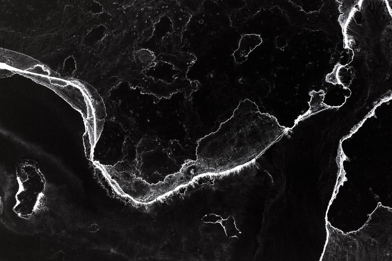 As imagens da série Cadernos de Observação estão próximas de uma representação que reconhecemos dos cânones do rigor científico, mas que desconfiamos que a eles não lhes pertencem. Lugares ambivalentes, em simultâneo subjetivos e objetivos, sem escala, que sabemos não conhecer, mas que nos são familiares e tendemos a imaginar infinitamente distantes ou microscopicamente próximos.