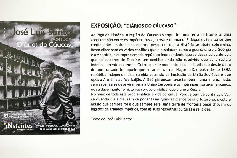 A exposição “Diários do Cáucaso”, de José Luís Santos, é a centésima Proposta Fotográfica do iNstantes, está patente no Centro de Reabilitação do Norte, Av. Infante de Sagres, 349, em Valadares, de 29 de janeiro a 5 de março de 2025.