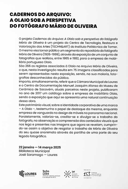 A exposição “Cadernos de Arquivo: A Olaio sob a perspetiva do Fotógrafo Mário de Oliveira”, está patente na Biblioteca Municipal José Saramago, em Loures, de 22 de janeiro a 14 de março de 2025.