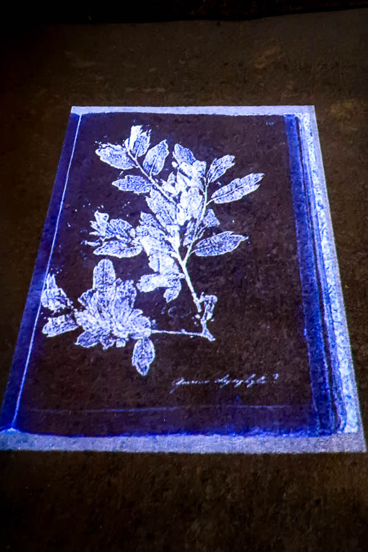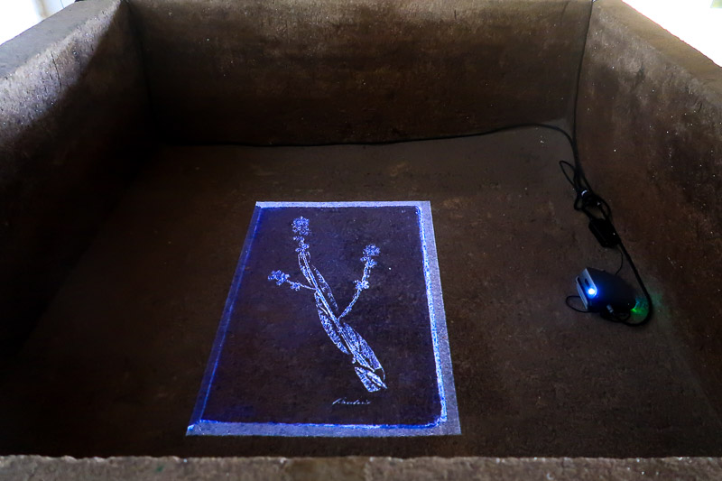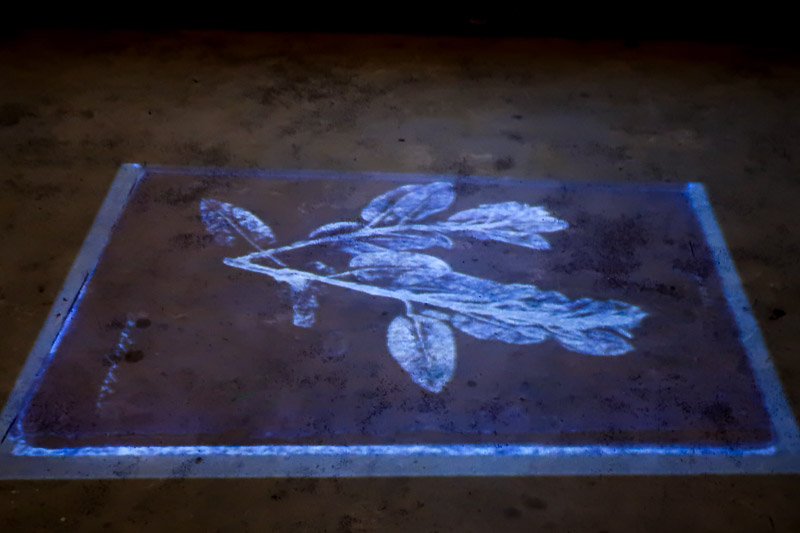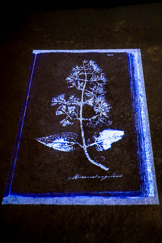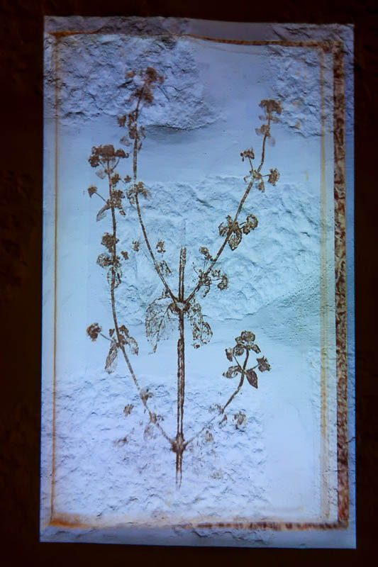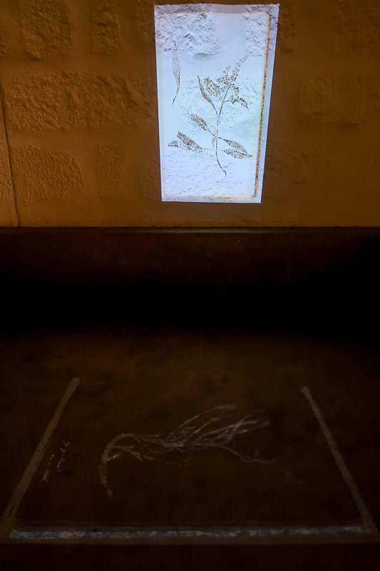 Neste espaço, encontra-se também uma instalação de vídeo sobre Impressions de Plantes [Impressões de plantas], um herbário que contém as plantas recolhidas nas Américas por estas figuras históricas. [Esta projeção tem lugar no fundo escuro das cubas do lagar e nas paredes contíguas.]