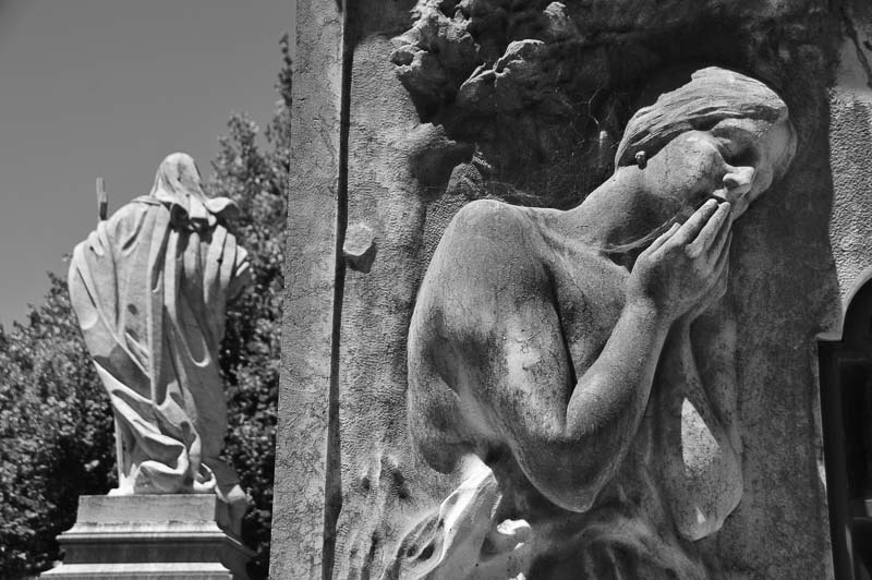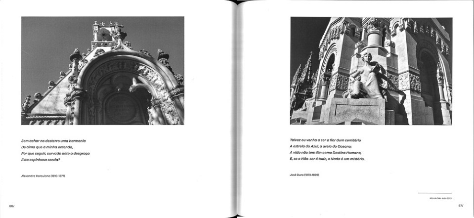 A morte ganha aqui, neste registo dos cemitérios e da sua arte, uma dimensão física. Estátuas, formas arquitetónicas, simbologias dão-nos uma visão concreta de quem ali está, e de como os que ficaram os quiseram homenagear. Ler os mortos é, também, interpretar os vivos.