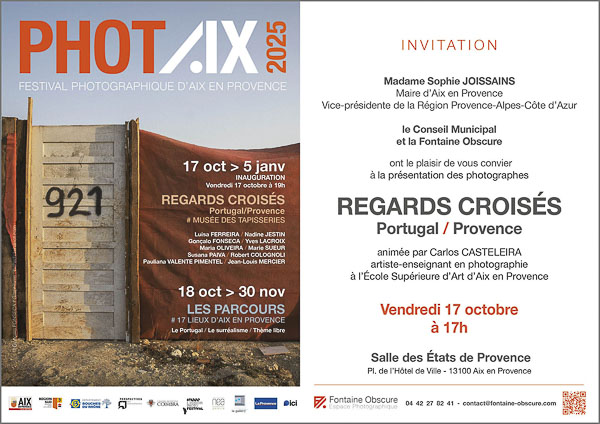 Integrado no festival de fotografia “Phot’Aix”. Portugal, país convidado de honra. Exposição “Regards Croisés «Portugal-Provence»”
