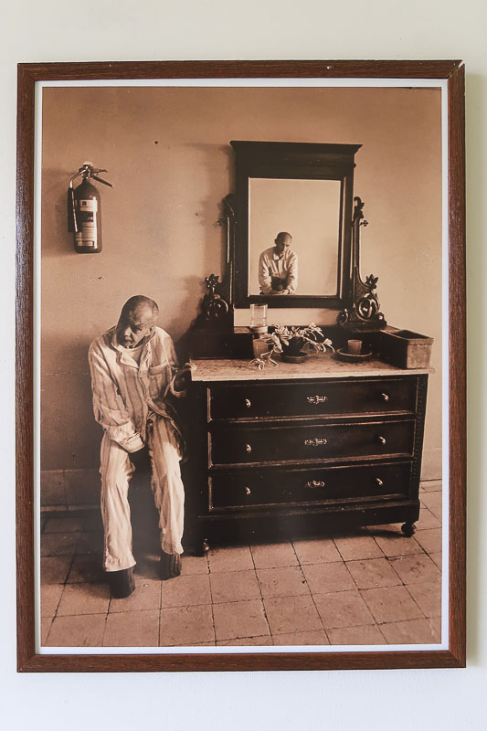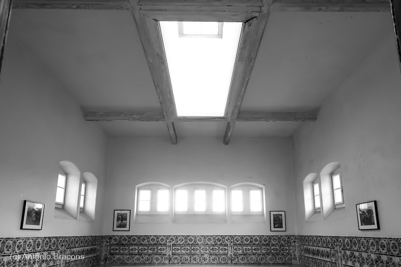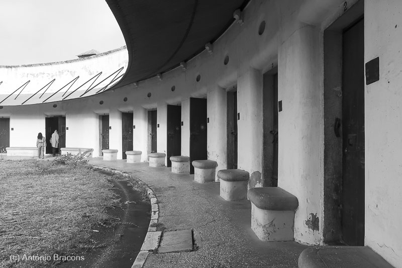 Gageiro fotografou também o panóptico, onde a exposição tem lugar, sendo apresentadas, na área da entrada, três fotografias.