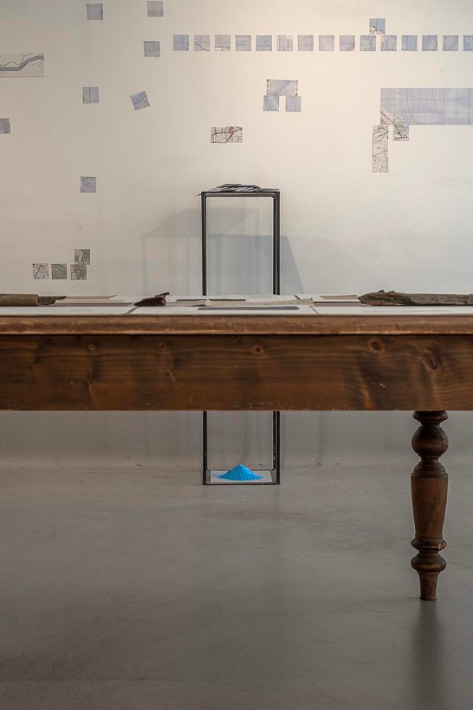 A obra exposta é materializada num livro de artista — um livro-Atlas que é peça única e irreproduzível — resultado da combinação entre o trabalho de pesquisa dos seus vários planeamentos e o trabalho de campo realizado durante as várias travessias deste território.